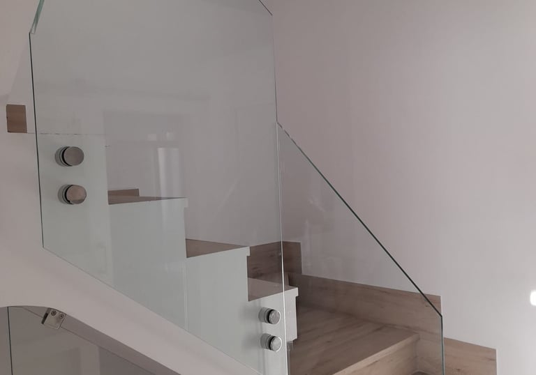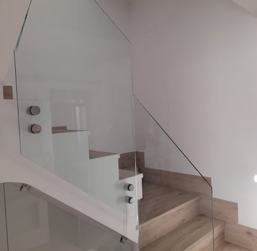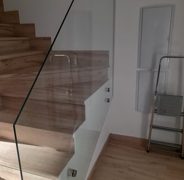 Utilizamos vidrio de alta resistencia anclado con soportes de acero inoxidable que aseguran firmeza y un acabado minimalista. Este diseño no solo brinda mayor luminosidad al espacio, sino que también garantiza la seguridad sin renunciar a la elegancia.